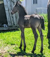 A tall black leggy filly Out of registered Mare and Stallion. Mare is Clemintine, out of Hardy Farms Thunder Supreme. Sire is one of the last son's of HF Cassius Clay. Mr. Ali.