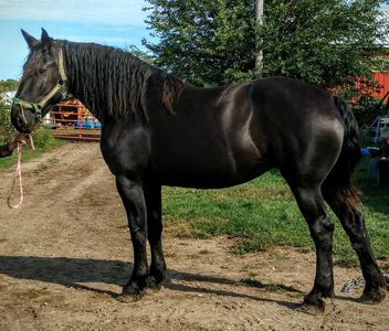 Friesian Heritage Horse Association registered Mare . 1/2 Friesian, 1/2 Percheron. She is out of 5 generations of home raised Percherons, her sire was the World Percheron congress Stallion Thunder Supreme. Her current filly is 3/4 Friesian out of Piper.